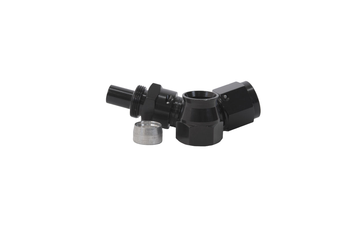Fitting - Hose End - PTFE Racing Hose - 45 Degree - 8 AN Hose to 8 AN Female Swivel - Aluminum - Black Anodized - Each