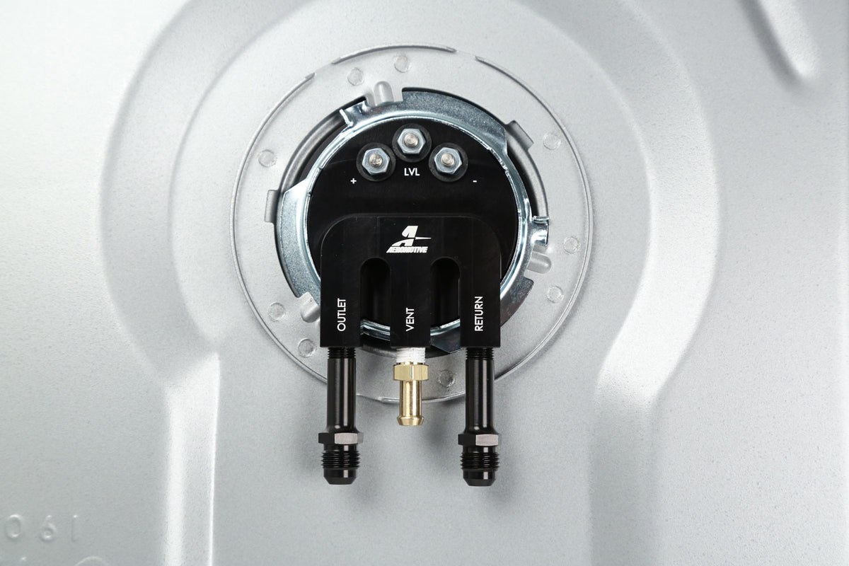 Fuel Tank - Gen ll Stealth - 340 lph Pump - 6 AN Male Inlet - 6 AN Male Outlet - Sending Unit - Steel - Silver Paint - GM F-Body 1982-92 - Each