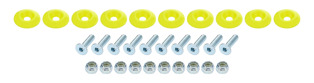 Body Bolt Kit - 1/4-20 in Thread - 1 in Long - Allen Head - Bolts / Countersunk Washers / Lock Nuts Included - Plastic / Steel - Fluorescent Yellow / Zinc Oxide - Set of 10