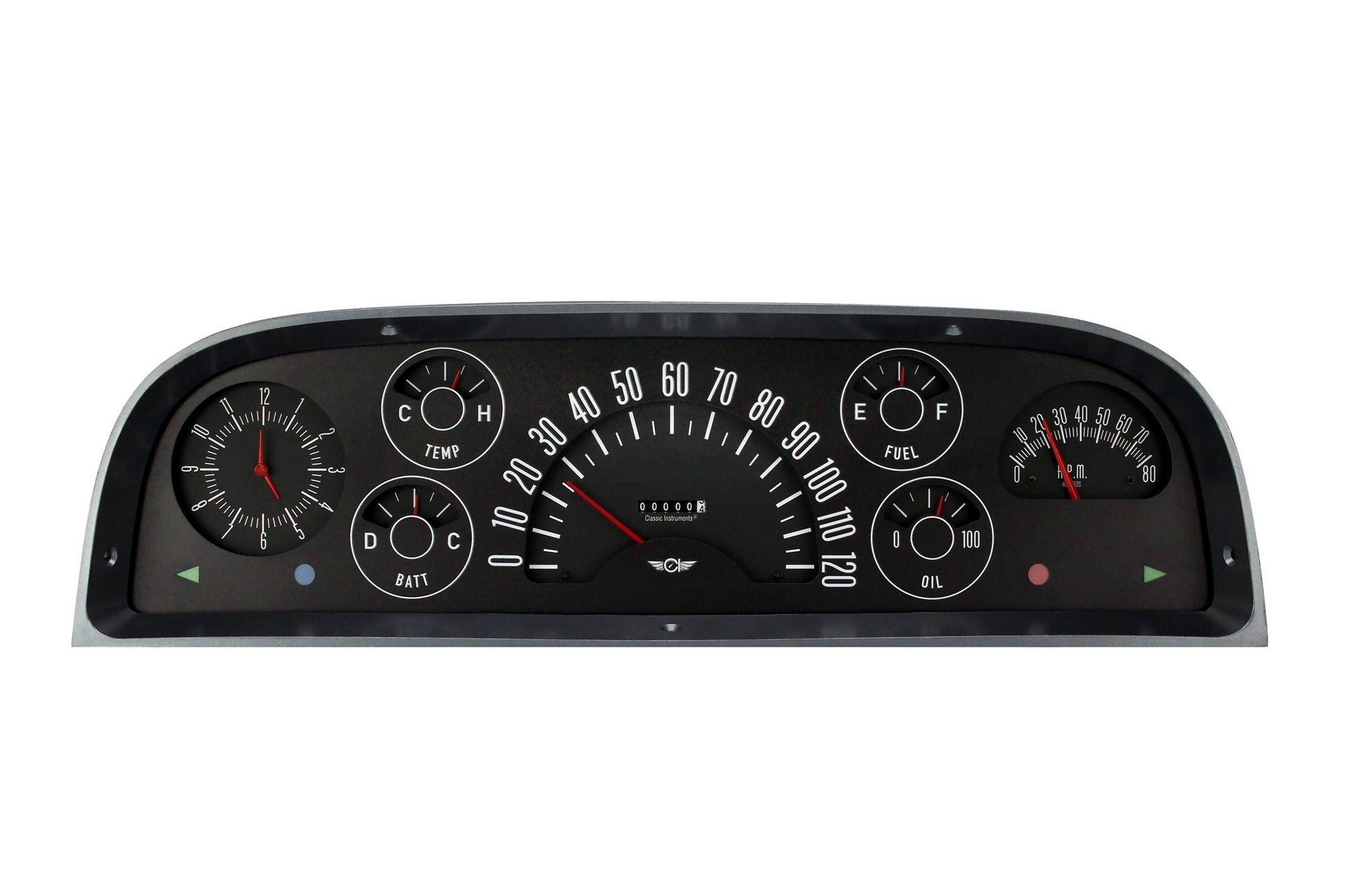 Gauge Kit - Direct-Fit - Analog - Clock / Fuel Level / Oil Pressure / Speedometer / Tachometer / Voltmeter / Water Temperature - Black Face - GM Fullsize Truck 1960-63 - Kit