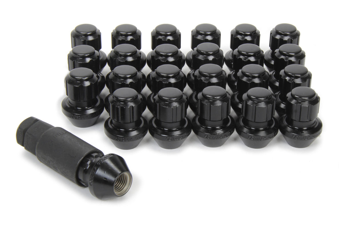 Wheel Lock - Factory Style Bulge - 14 mm x 1.50 Thread - Spline Drive - Key Included - Steel - Black Chrome - Set of 24