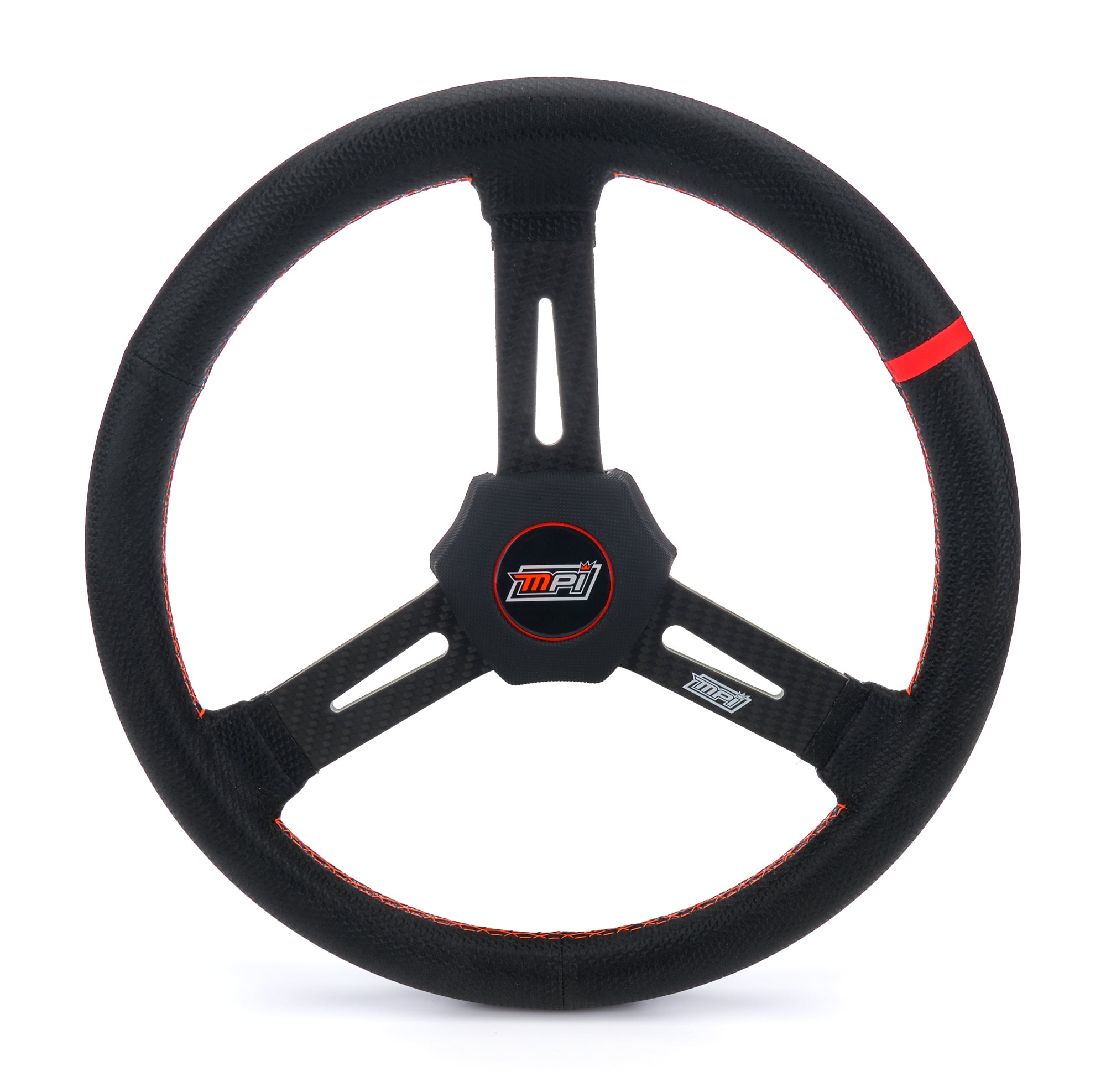 Steering Wheel - Dirt Racing - 15 in Diameter - Flat - 3-Spoke - X-Large Black Foam Grip - Orange Stripe - Carbon Fiber - Each