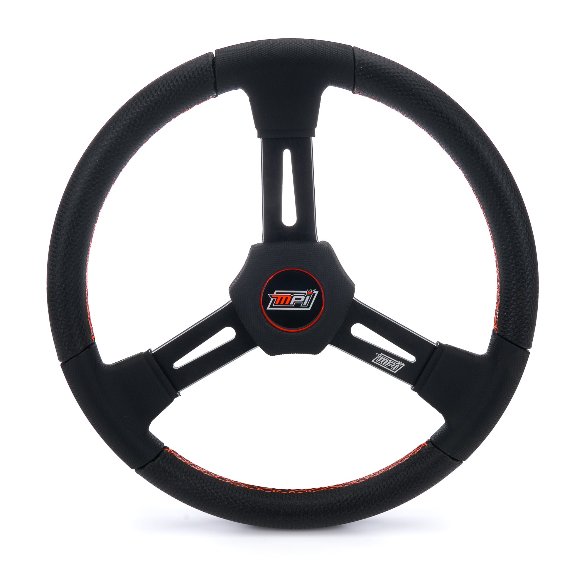 Steering Wheel - Dirt Racing - 15 in Diameter - Flat - 3-Spoke - X-Large Black Foam Grip - Aluminum - Black Anodized - Each