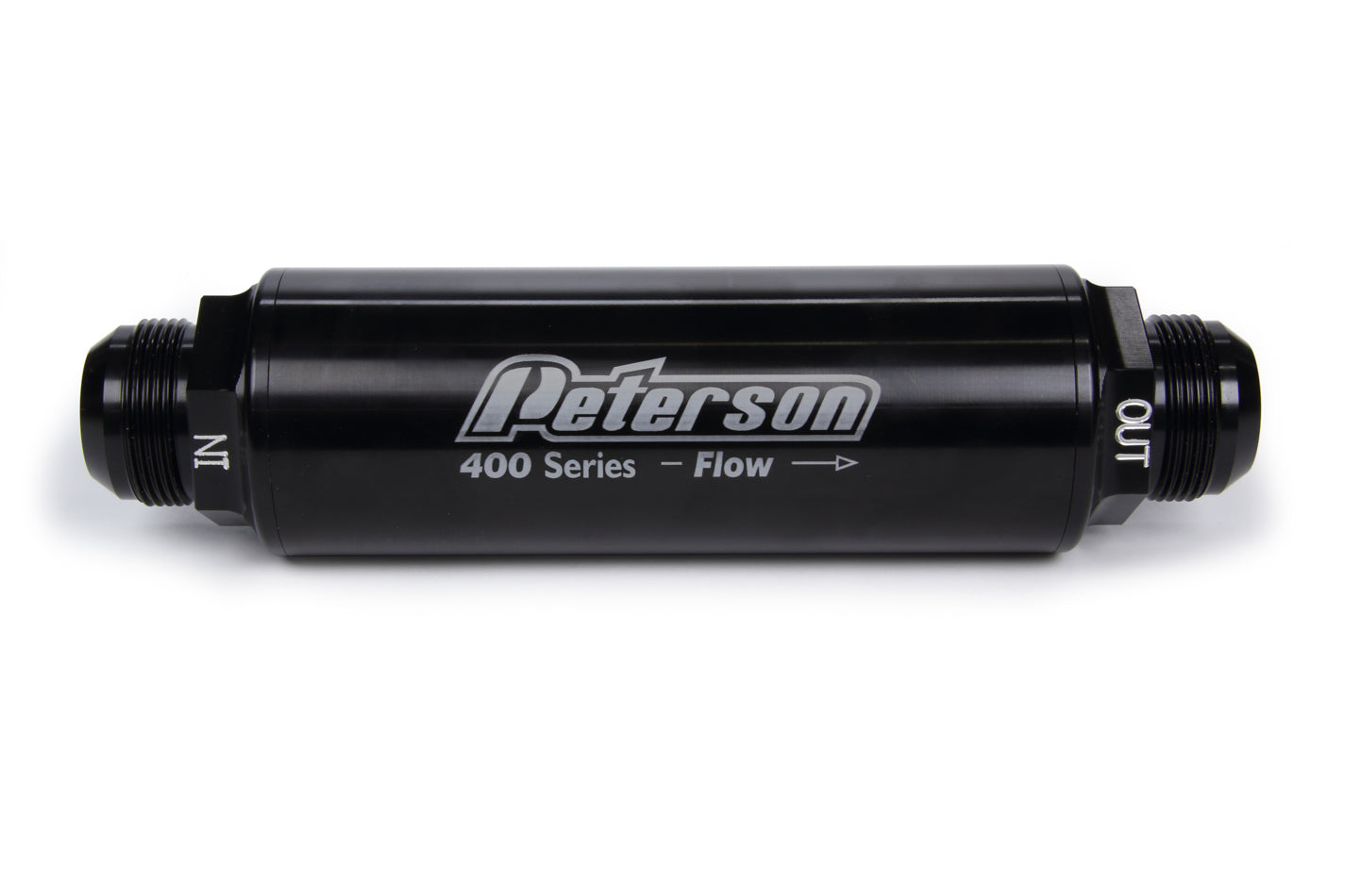 Oil Filter - 400 Series - In-Line - 100 Micron - Stainless Element Screen - 20 AN Male Inlet - 20 AN Male Outlet - Aluminum - Black Anodized - Each