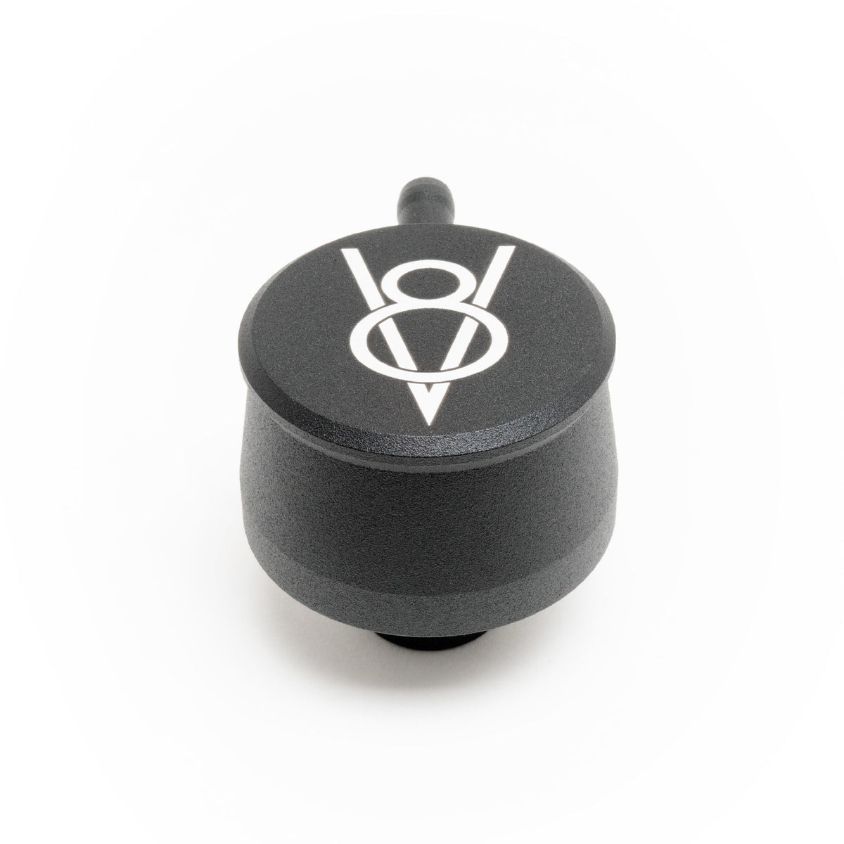 Breather - Push-In - Round - 1-1/4 in Hole - PCV Valve - Vintage V8 Logo - Aluminum - Black Powder Coat - Each
