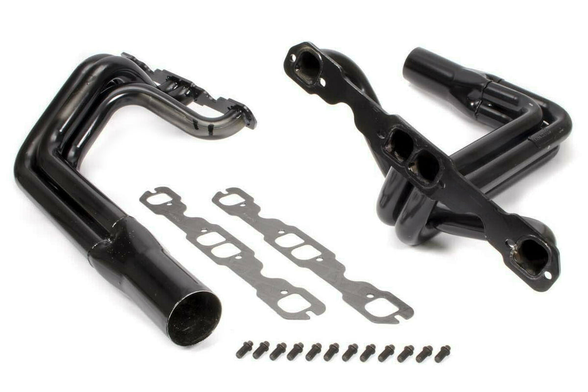 Headers - IMCA Modified - 1.625 in Primary - 3 in Collector - Gaskets / Hardware Included - Steel - Black Paint - 602 Crate - Small Block Chevy - Pair