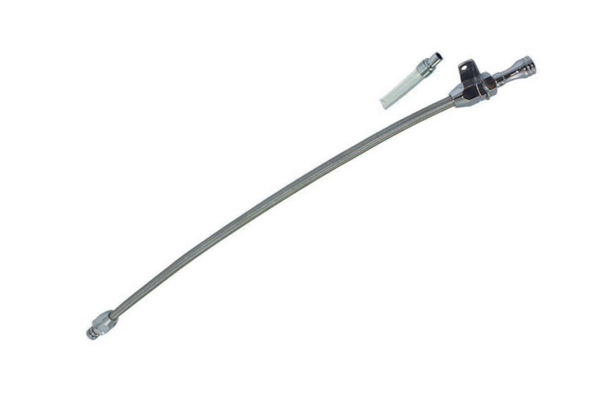 Transmission Dipstick - Flexible - Transmission Mount - OEM Length - Braided Stainless - Aluminum - Chrome - Torqueflite - Each
