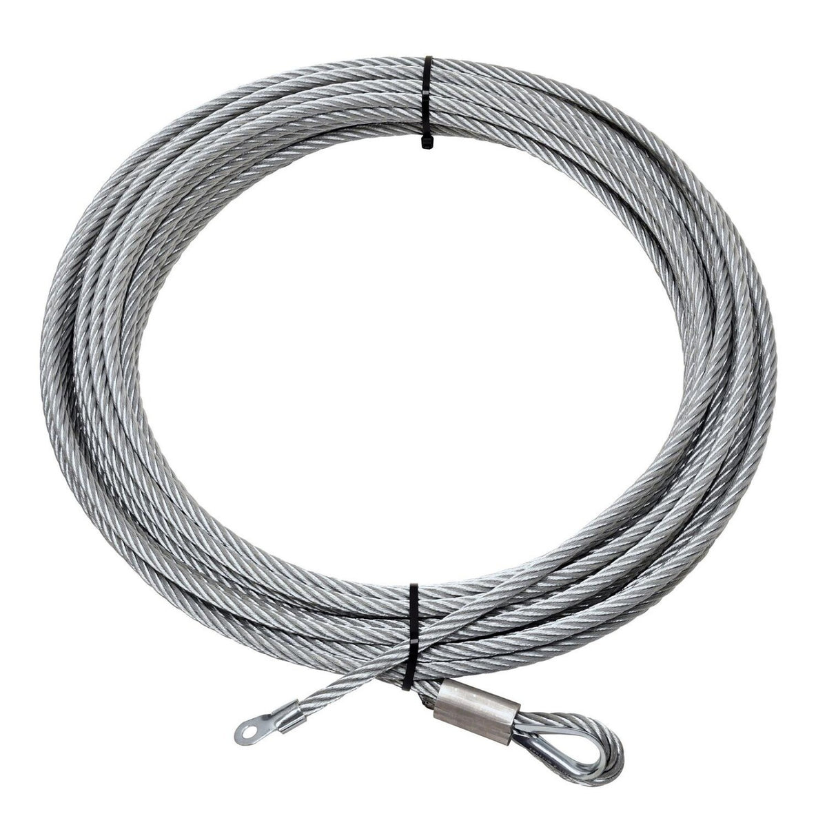 Winch Rope - 3/8 in OD - 85 ft Long - Hook Included - Steel - Galvanized - Each