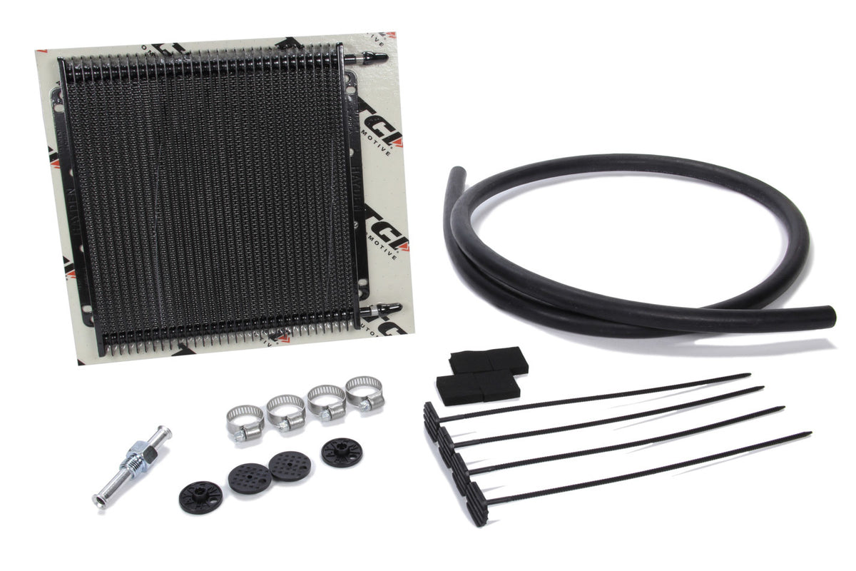 Fluid Cooler - Max Cool - 11 x 9.5 x 0.75 in - Plate and Fin Type - 11/32 in Hose Barb Inlet / Outlet - Fitting / Hardware / Hose - Aluminum - Black Paint - Automatic Transmission - Kit