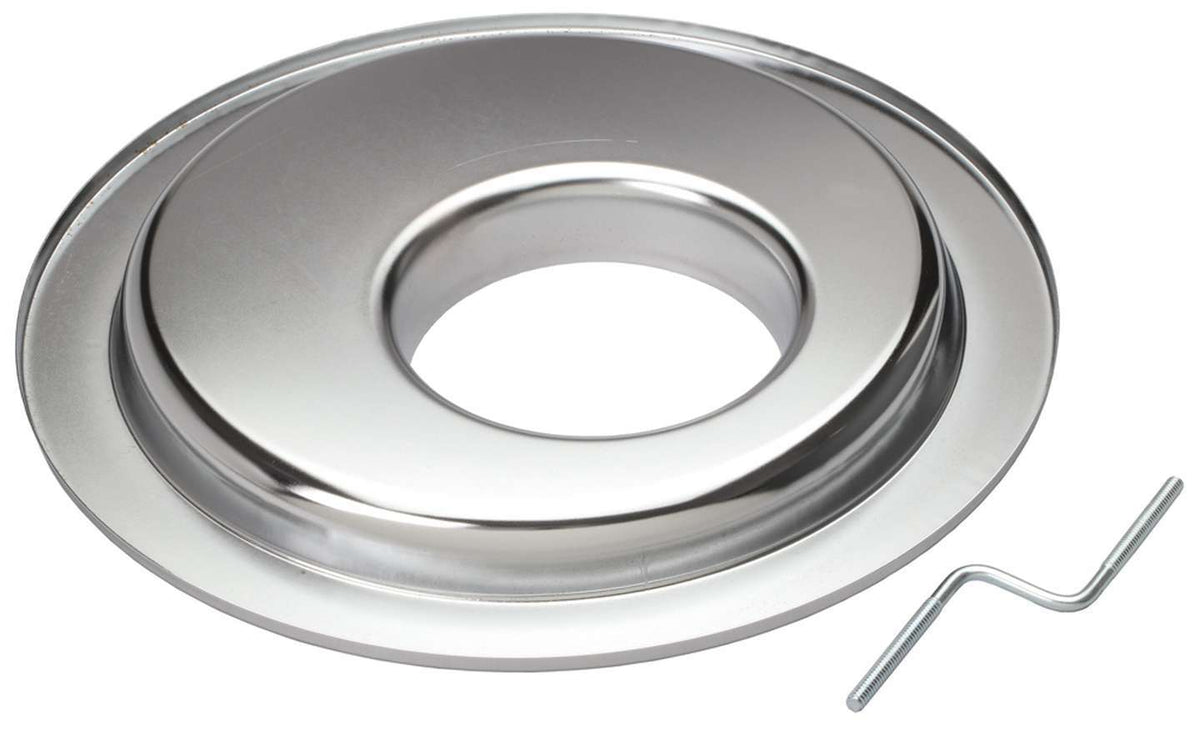Air Cleaner Base - 14 in Round - 5-1/8 in Carb Flange - Offset - Flat Base - Steel - Chrome - Each