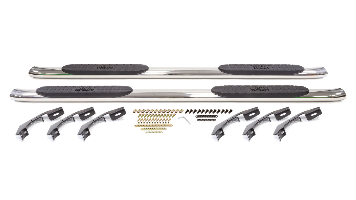 Step Bars - Pro Traxx - 4 in Oval Curved - Mount Kit Included - Stainless - Polished - Crew Cab - GM Fullsize Truck 2014-19 - Pair